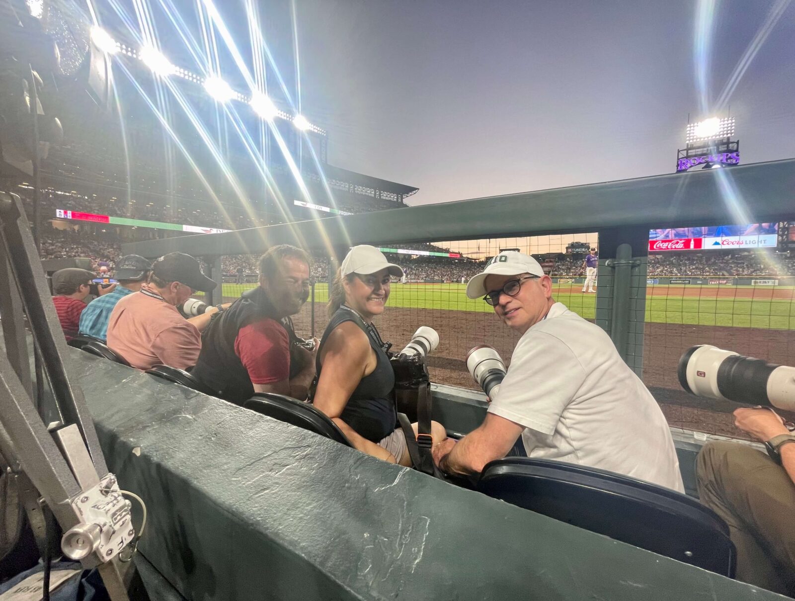 As the workshop began, our instructors walked us through everything — from positioning to camera settings to how to read the rhythm of the game. We got there a few hours early to get settled, tour the stadium, review the areas we could shoot from and attend batting practice. This was probably my favorite time, we were on the field with coaches, players families and fans. One of our incredibly talented instructors, Jean Fruth, was well-loved by the Rockies and introduced our group whenever she could.